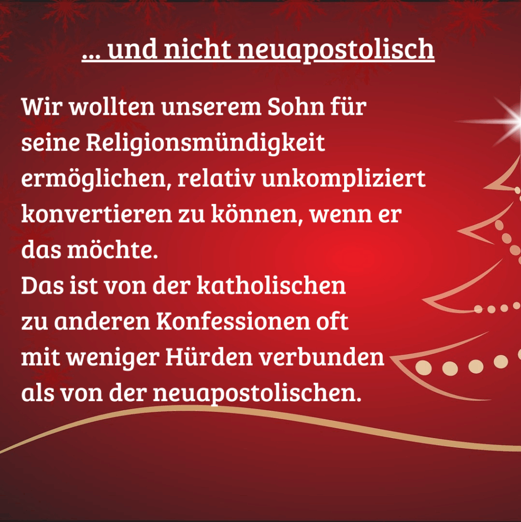 Gestern haben wir erklärt, warum unser Kind katholisch getauft ist und an Tag 12 erklären wir heute, warum es nicht neuapostolisch getauft wurde.